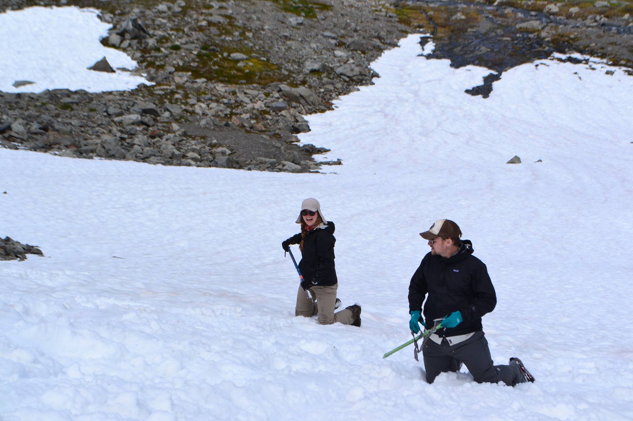 Before we knew it, the weeks of trainings and preparations came to a close, and we were hiking downhill into the woods, away from all the sights, sounds, and stresses of civilization. We were tasked with hiking over 50 miles from Deer Park through Gray Wolf Pass to Dose Meadows, up to Cameron Pass and back out to Deer Park. Our first day was full of challenges, including the sole of a student’s hiking boot breaking off, but we quickly got into a routine and knocked out the miles. We crossed over log bridges, walked through expansive meadows full of wildflowers and butterflies, and climbed peaks with 360-degree views of the valley. We jumped into the freezing waters of Cedar Lake, only to have to run back over the snowy ground barefoot to rescue our camp from the encroaching deer. We traversed a snow-covered mountain pass without a trail, utilizing the ice axe training Tim and I had administered on the slopes just moments before. We navigated a mountainside at midnight by only the light from our headlamps and the stars overhead to find ice worms in a glacier. Four bear sightings, a visit from an endangered northern spotted owl, and cowboy camping under the stunningly visible Milky Way are some of the countless highlights of the trip.