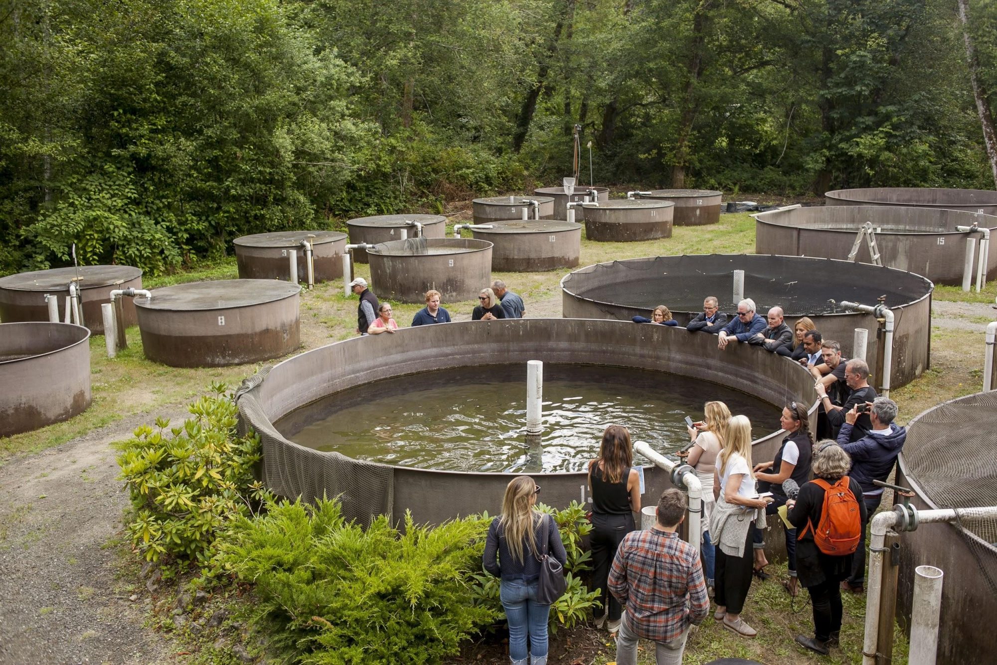 This reflection on the impact of the built environment was thanks to three days worth of purposeful collaboration and cross-discipline conversation about the intersection of climate change and food security. The group worked backwards from the table to the ocean: connecting first with chefs and fish traders, then to processing and distribution facilities, and ultimately to the seafood growing sites on Hood Canal and the natural fish habitats off the Seattle waterfront.