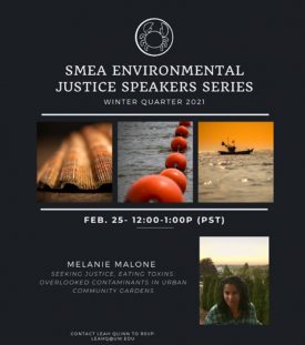We’d love you to join us Thursday, February 25, 12:00-1:00pm PST via Zoom for our 4th speaker in SMEA’s Environmental Justice Speakers Series.