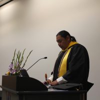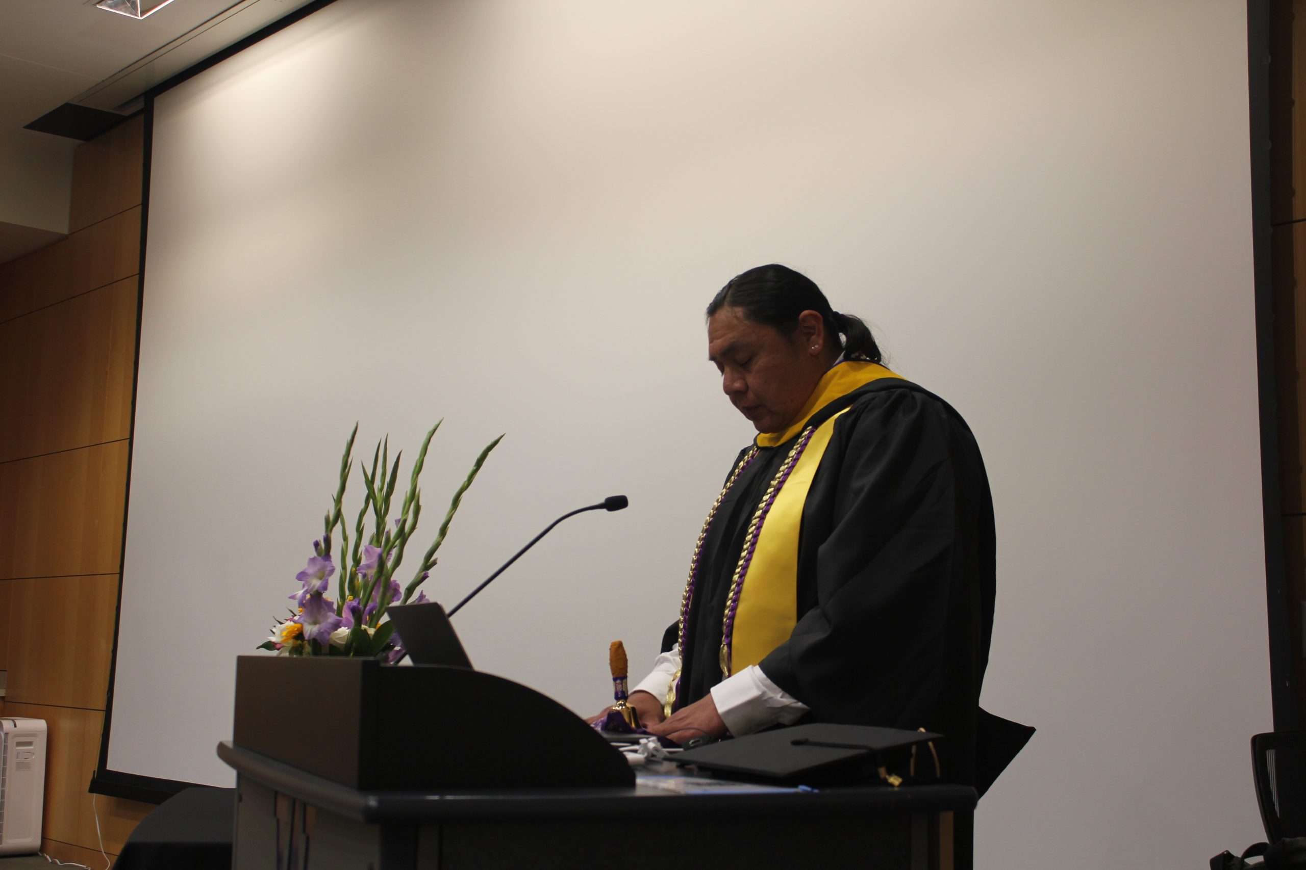 Our ceremony began with an opening address by SMEA Professor Terrie Klinger, followed by speeches from nominated class speakers Michael Buck and Maya Garber-Yonts. The keynote address was delivered by Vice Councilman Chad Bowechop of the Makah Tribe, with closing remarks by Maya Tolstoy, Dean of the College of the Environment.