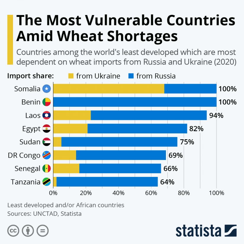 During the early stages of the war, some agricultural specialists suggested that other grain producers would provide the supply. This analysis did not consider that there were already supply shortages and food shortage issues. Due to existing shortages, 14 countries prohibit the export of food commodities, primarily grains, and vegetable-based oils. Recently, India, which many agricultural experts hoped would fill the void left by a reduced Ukrainian and Russian supply, banned wheat export. The ban was put in place due to the recent heatwave. India joins Russia, Egypt, Kazakhstan, Kosovo, and Serbia in banning grain exports tightening the global supply.