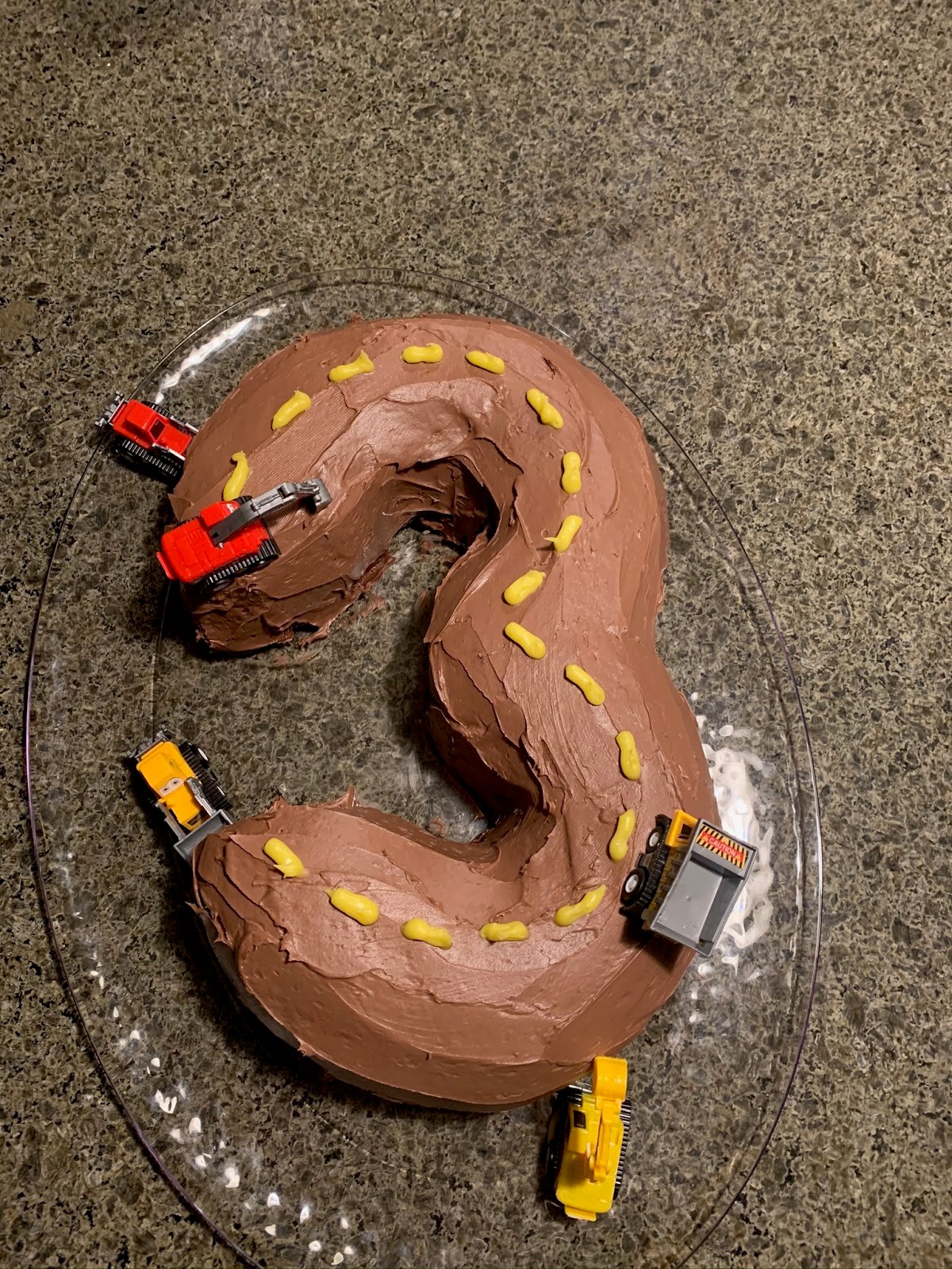 Sometimes you run out of engaging activities for toddlers whilst quarantining, so you recreate their birthday cake, construction vehicles and all.