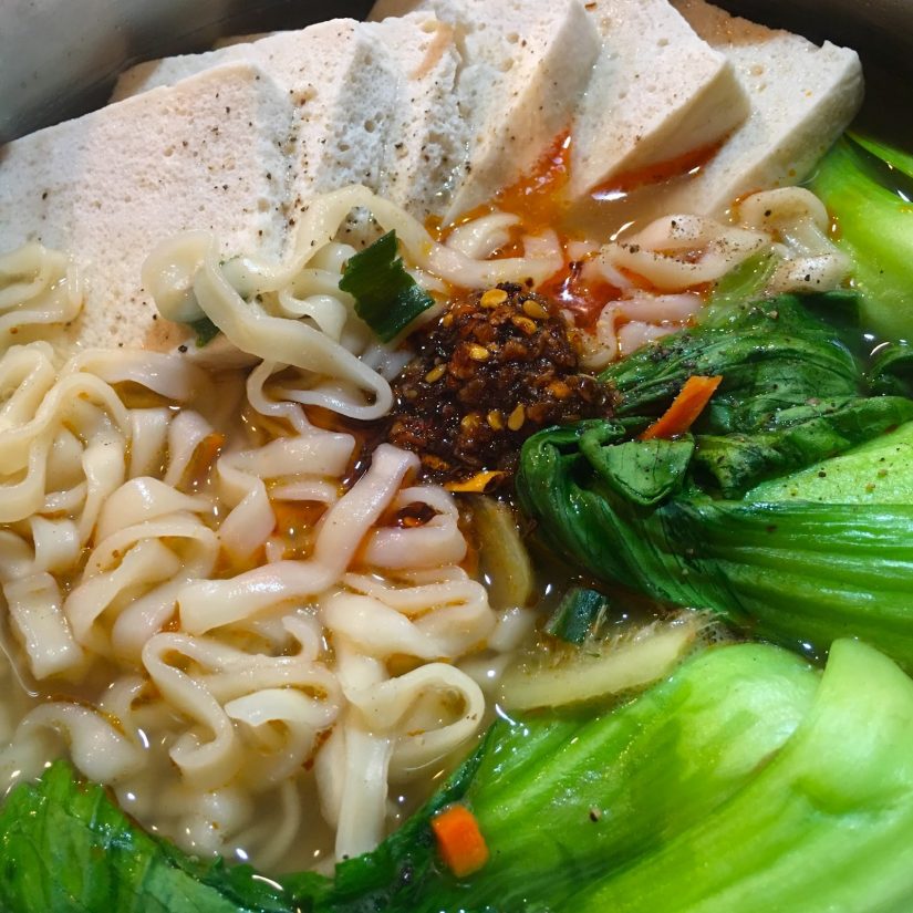 Honestly I just use the recipe on the back of the S&B box and tweak it to my tastes! My family always bought the S&B brand curry paste when I was a kid so it’s nostalgic for me and definitely a comfort food I turn to in times like these. However, I make it with two different kinds of tofu (pressed and fried) and not beef, which is what my parents used to use. I put in more veg than what the recipe calls for since I prefer a high substance-to-sauce ratio and because it helps to cut the saltiness of the curry paste. Brown rice replaces white rice for added nutritional oomph. Oh, and I add fresh chopped ginger and garlic, plus extra turmeric, coriander, and chili powders to amp up the heat (Japanese curry tends to run mild so even their “hot” level feels like a medium to my Korean taste buds). As a bonus, any leftover tofu pieces that don’t get thrown into the pot of curry either gets dropped into a noodle soup or stir-fried along with whatever green vegetable is sitting in the fridge — usually it’s either baby bokchoy or gai lan (i.e. “Chinese broccoli”).