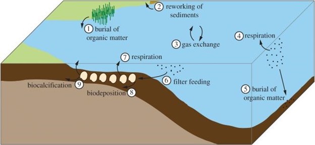 As we enhance the health of our oceans by restoring and protecting these ecosystems, we will see an increase in marine organism biomass. Recent research has investigated the key role that whales, for instance, play in combating climate change. Whale excrement facilitates growth of carbon-sequestering phytoplankton, and as a large and long-lived creature, they store substantial amounts of carbon in their bodies. Seaweed and shellfish farms exemplify human-managed contributions to blue carbon, and shellfish help filter water which is degraded by eutrophication as a co-benefit.
