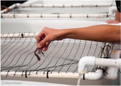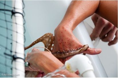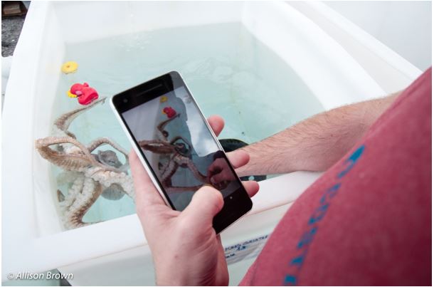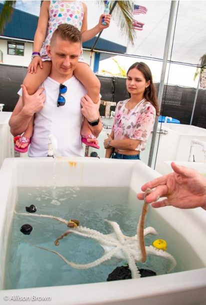 As habitats are negatively affected, noise pollution fills the ocean, and ocean acidification affects the shells of octopus’s food, the knowledge that if need be we can keep breeding populations of these incredible animals in our world is reassuring. In fact, it appears that populations of the creatures are doing remarkably well, though we cannot be sure as they are elusive organisms and that status could change quickly. Regardless, octopuses are charismatic and wonderful at raising awe and respect for the ocean and its inhabitants. The amazed looks on the participant’s faces as they interacted with these creatures would have been worth the visit even if I hadn’t gotten to hold “hands” with an octopus.