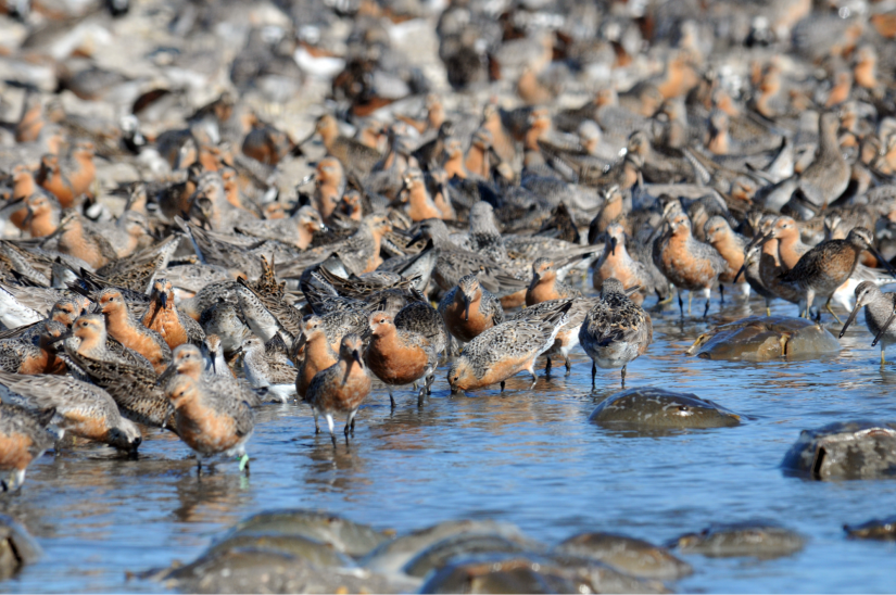 Ecologically speaking, they occupy an important niche within coastal and estuarine habitats. Horseshoe crabs feed on small benthic fauna. The adults themselves are also food for a variety of animals such as sea turtles, sharks, and alligators. Their energy-rich eggs are a critical food source for seabirds such as the endangered Red Knot, which rely upon horseshoe crab eggs to fuel their annual 9,000 mile migrations.